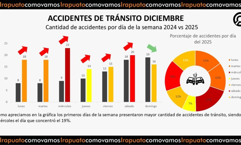 Aumentan 46% los accidentes de tránsito en Irapuato durante diciembre de 2025: Observatorio Ciudadano