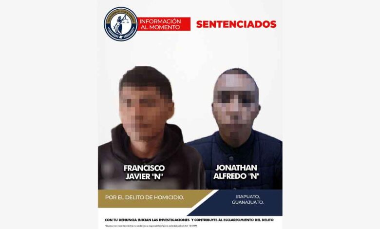 En audiencia de procedimiento abreviado, la Fiscalía General del Estado de Guanajuato logró sentencia condenatoria de cárcel en contra de FRANCISCO JAVIER “N”, alias “el panchillo”, y JONATHAN ALFREDO “N”, alias “el payaso”, por su responsabilidad penal en el delito de homicidio cometido en el municipio de Irapuato.