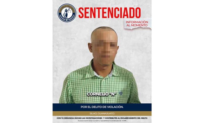 La Fiscalía General del Estado de Guanajuato obtuvo una sentencia condenatoria de 13 años y 4 meses de prisión, a través de un procedimiento abreviado, en contra de CORNELIO “N” por su responsabilidad en el delito de violación. Los hechos se registraron el 25 de diciembre de 2023, en una comunidad de la zona rural del municipio de Silao.