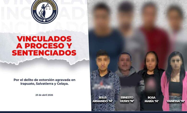 Los hoy sentenciados, identificados como JESÚS ARMANDO “N”, ERNESTO ULISES “N”, ROSA MARÍA “N” y VANESSA “N”, operaban mediante un esquema de extorsión que afectaba directamente a comerciantes y residentes de un fraccionamiento en las ciudades de Celaya e Irapuato.