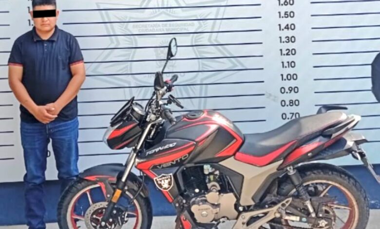 Al ubicar la motocicleta de la marca Vento, color negro, modelo 2025, los elementos la revisaron en el sistema Plataforma México, y verificaron que contaba con reporte de robo, motivo por el cual la aseguraron y la persona que la conducía fue detenida.